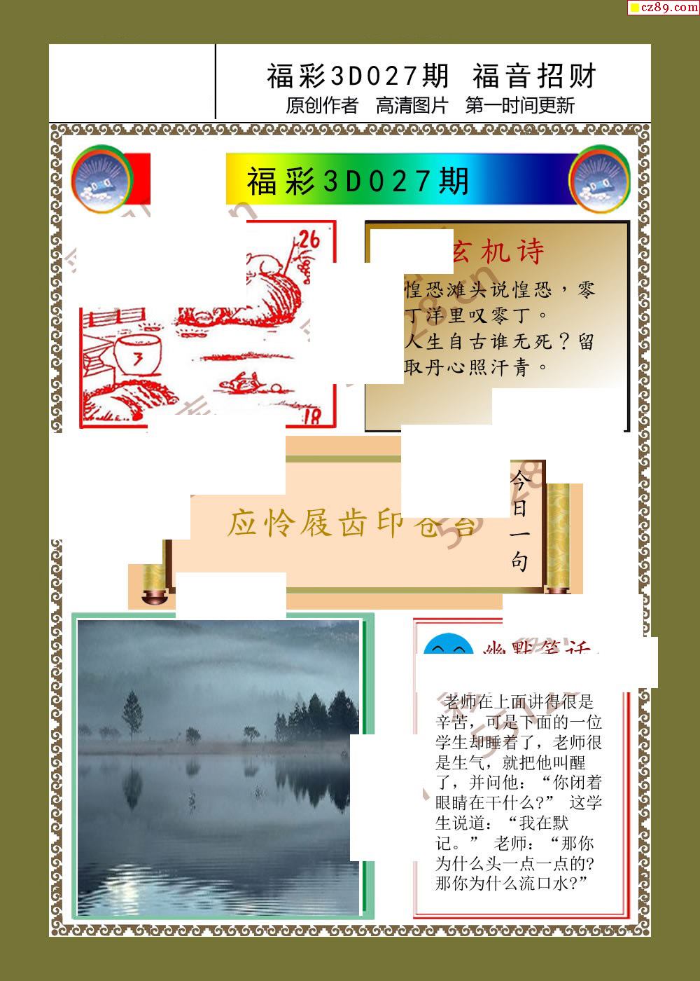 首页 > 福彩3D图谜 > 福音招财26年027期3d字画彩报
