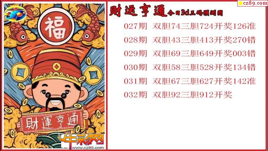 > 26年032期3d 财运亨通今日三码预测图