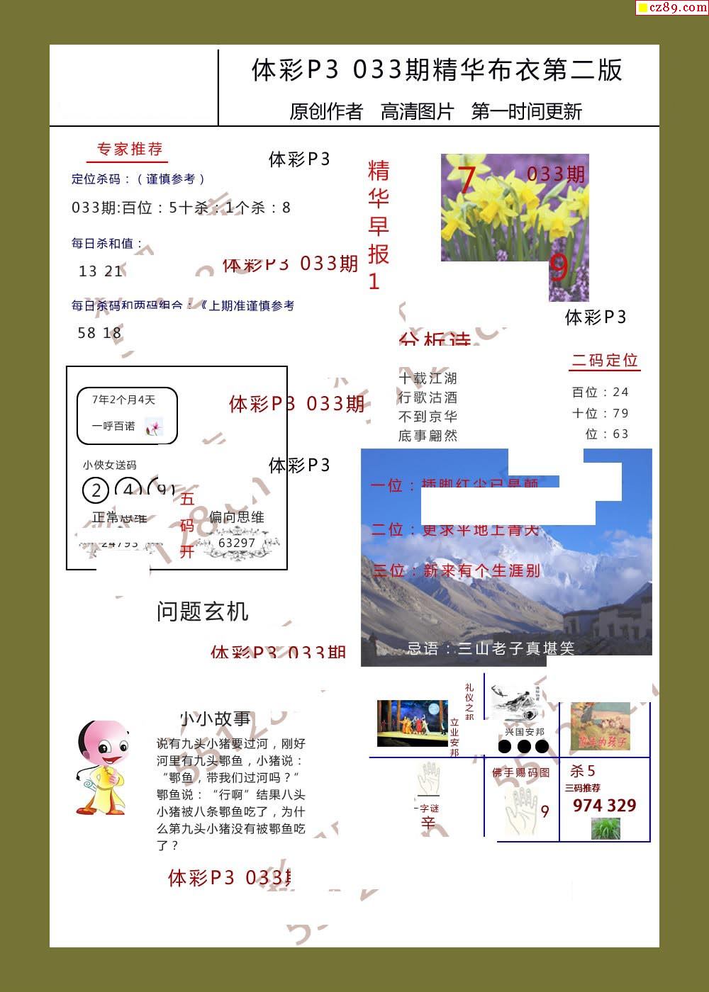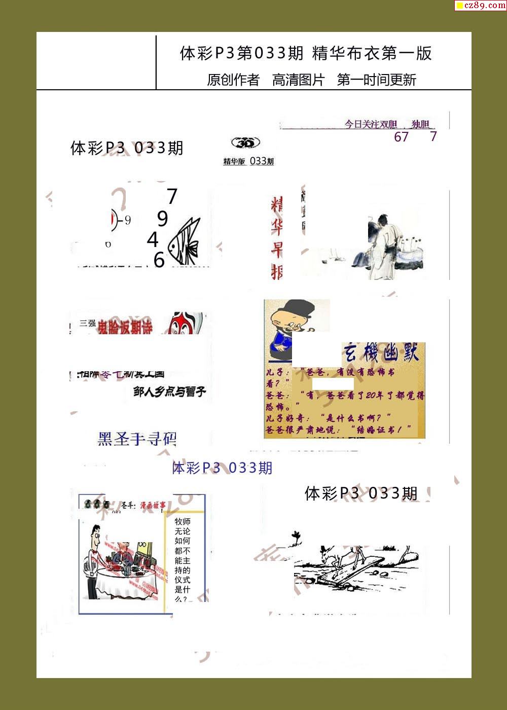 精华布衣彩报033期体彩p3图谜