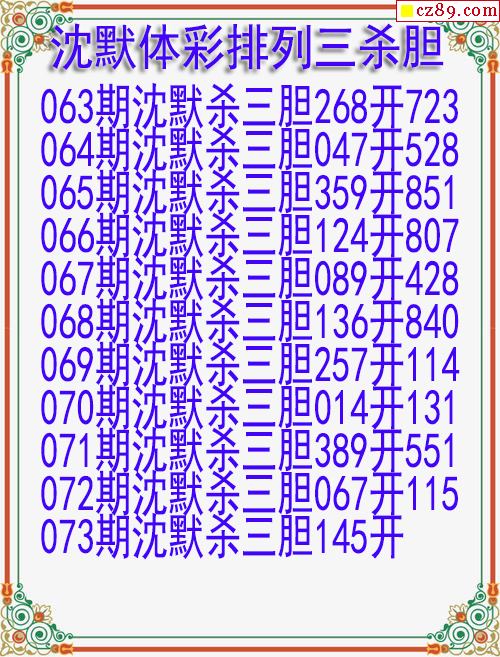 > 26年073期沈默体彩排列三杀胆图迷