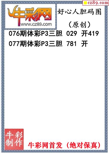 好心人送胆077期体彩p3图谜(原创)