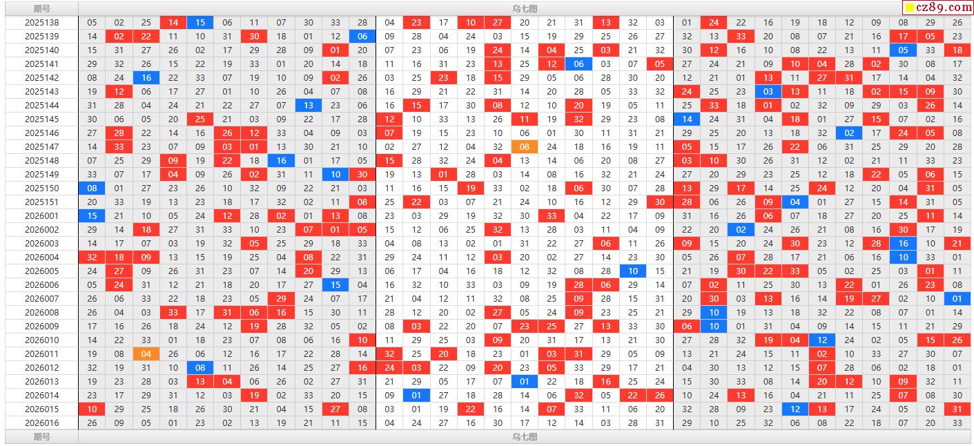 26年福彩双色球016期乌七图表